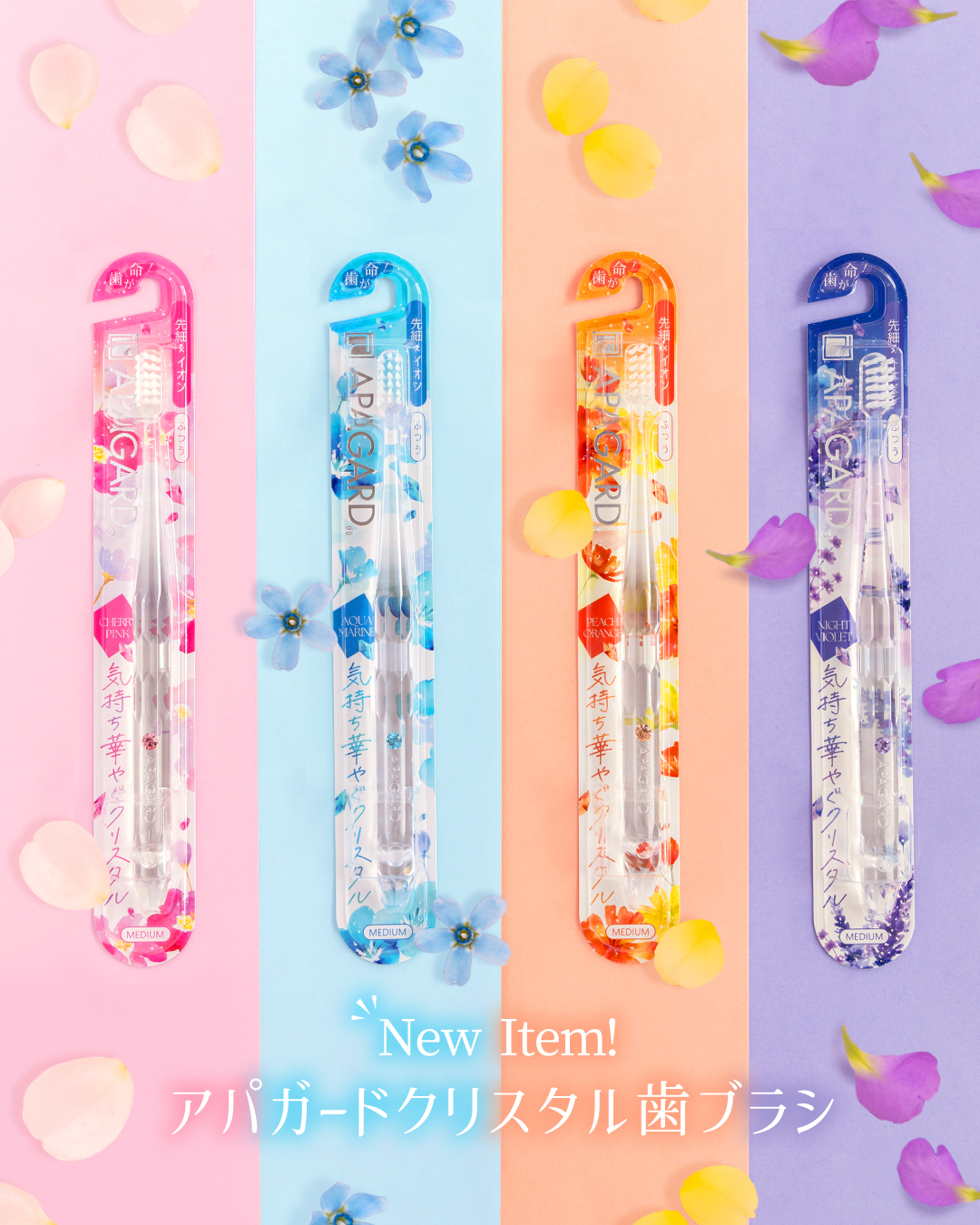 新しくなった「アパガードクリスタル歯ブラシ」で、毎日のケアをより特別なひとときへ。新色とともに、きらめく白い歯を目指しませんか。